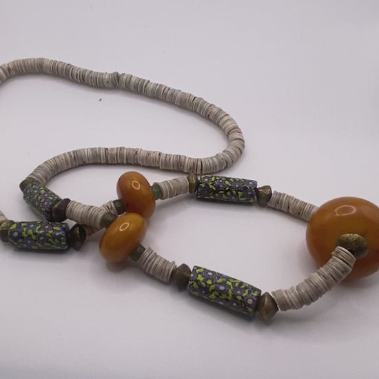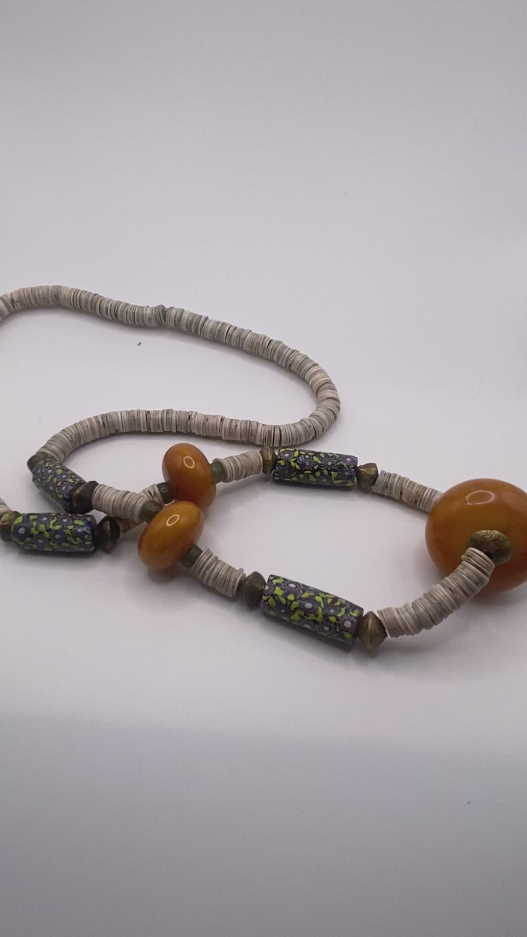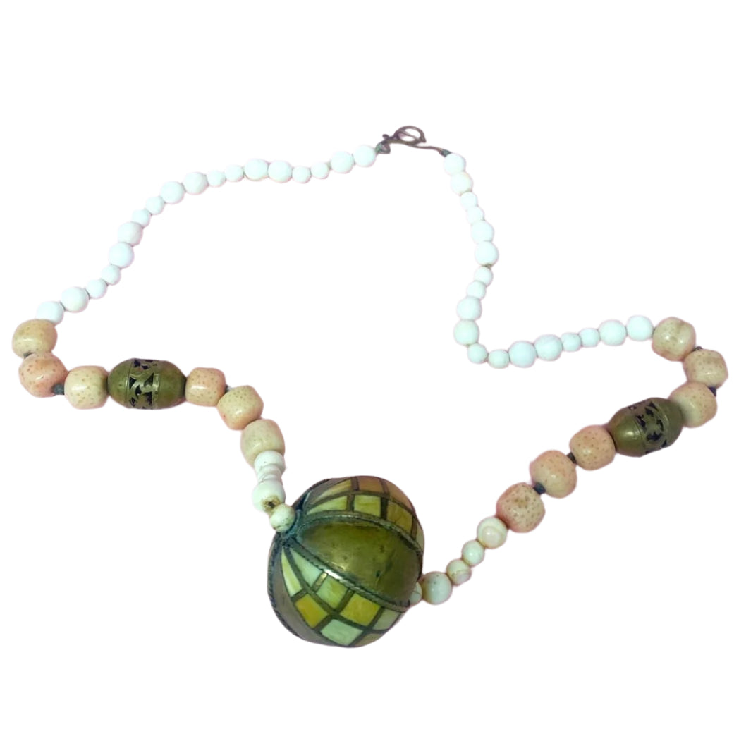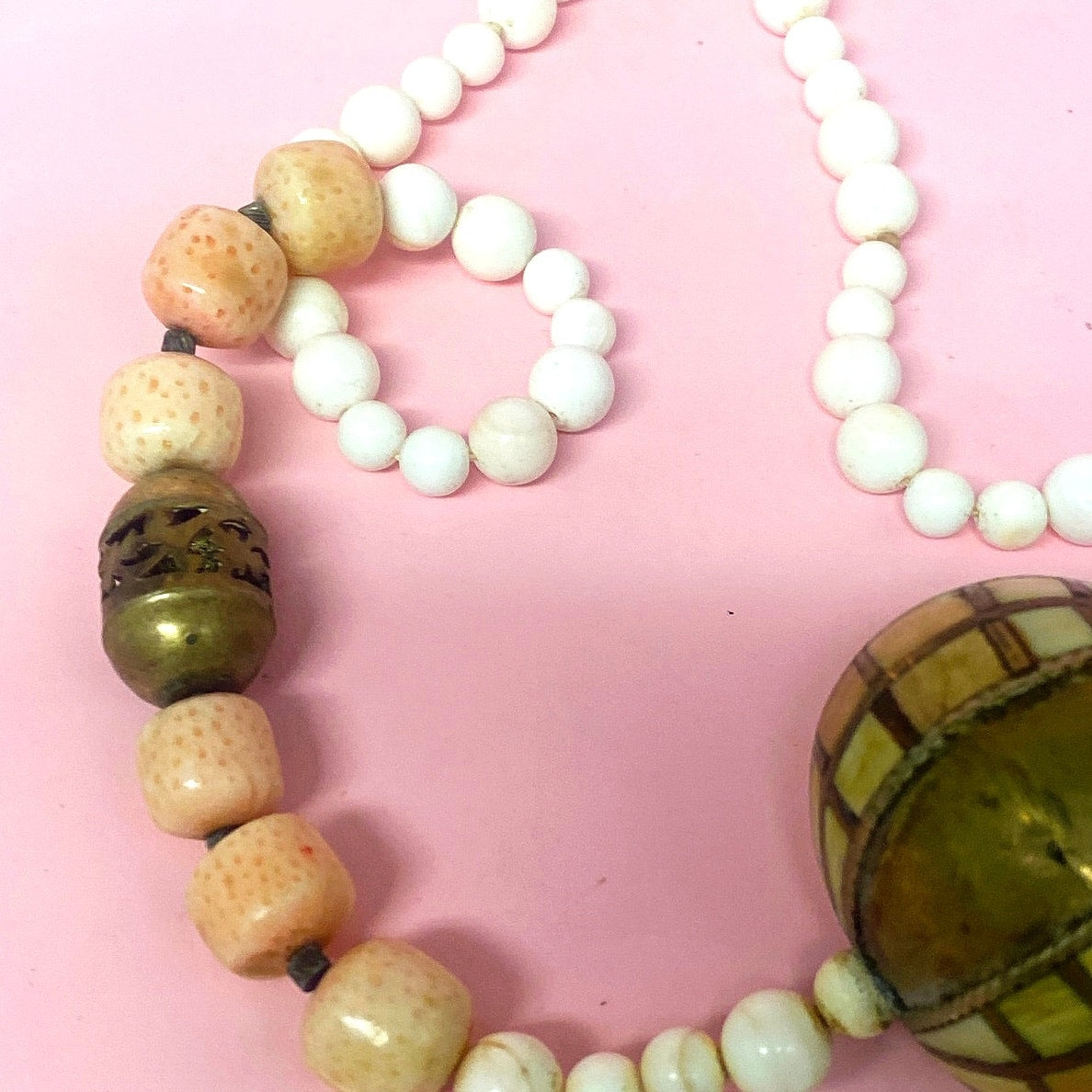Antique Angel Skin Coral & Brass Pendant Necklace | 1925