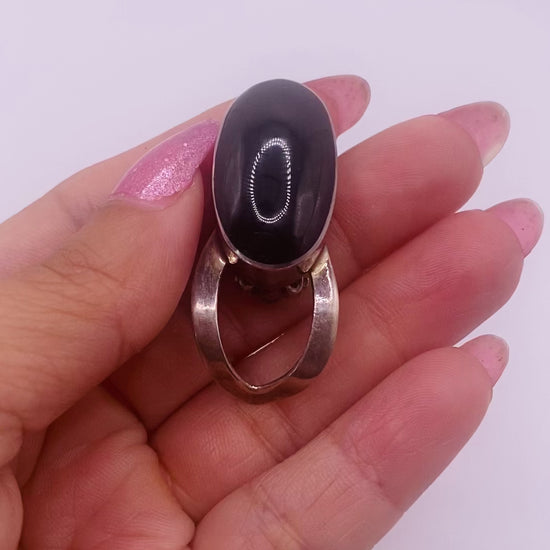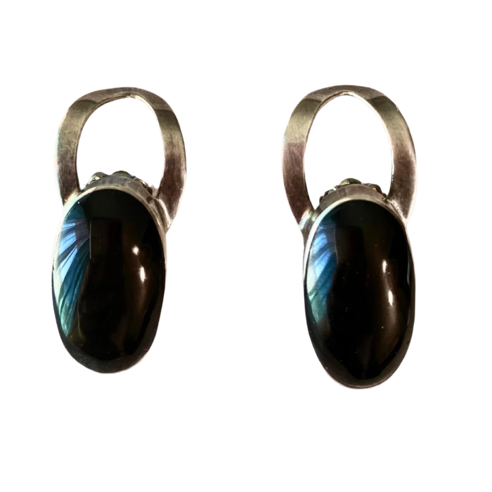 Rare Find and Design from Caldero Atachi Taxco Artisan Clip On Earrings on Sterling Silver and Black Onyx, Signed on Back
