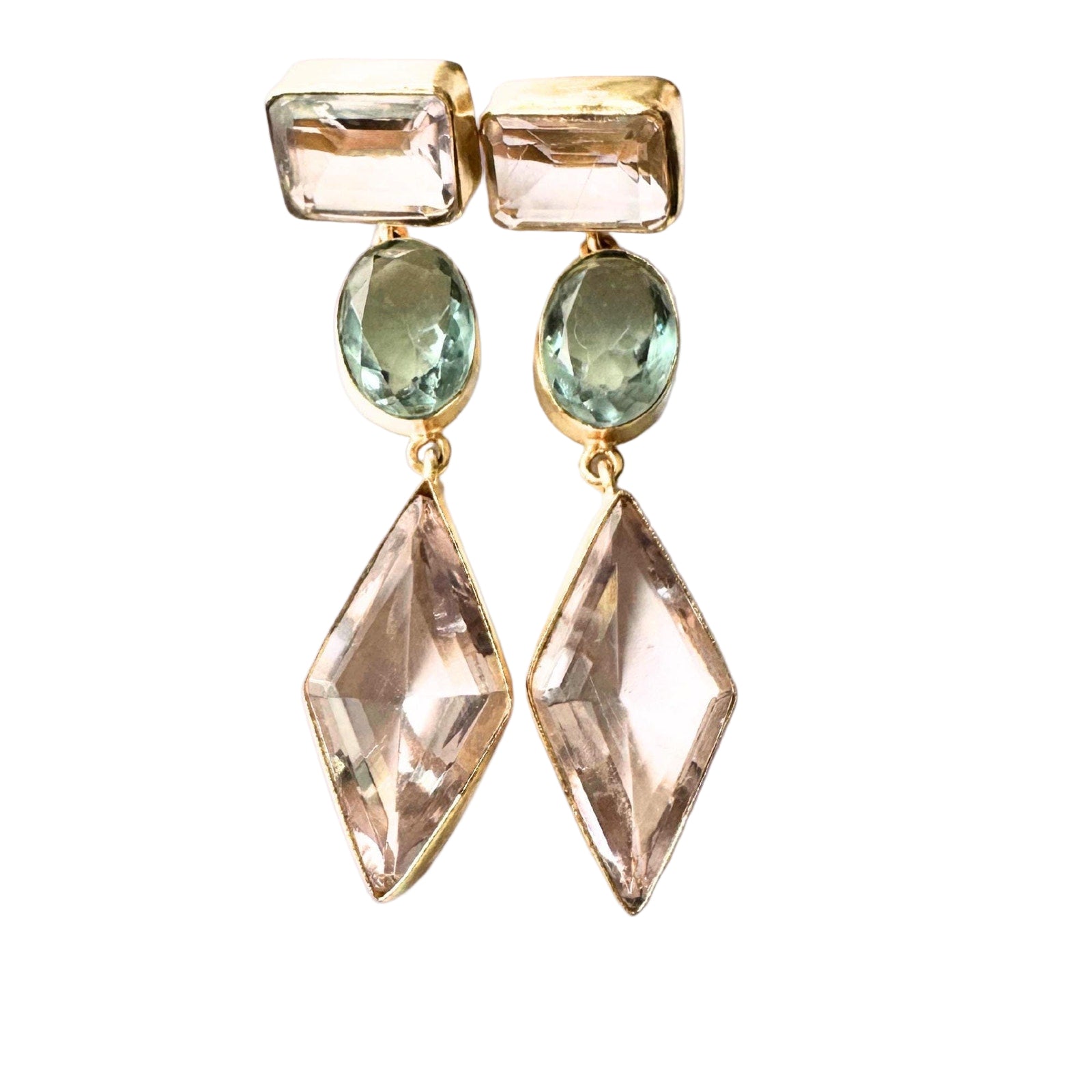 *Beautiful Cocktail Pink and Aqua color on Glass Gold tone Brass