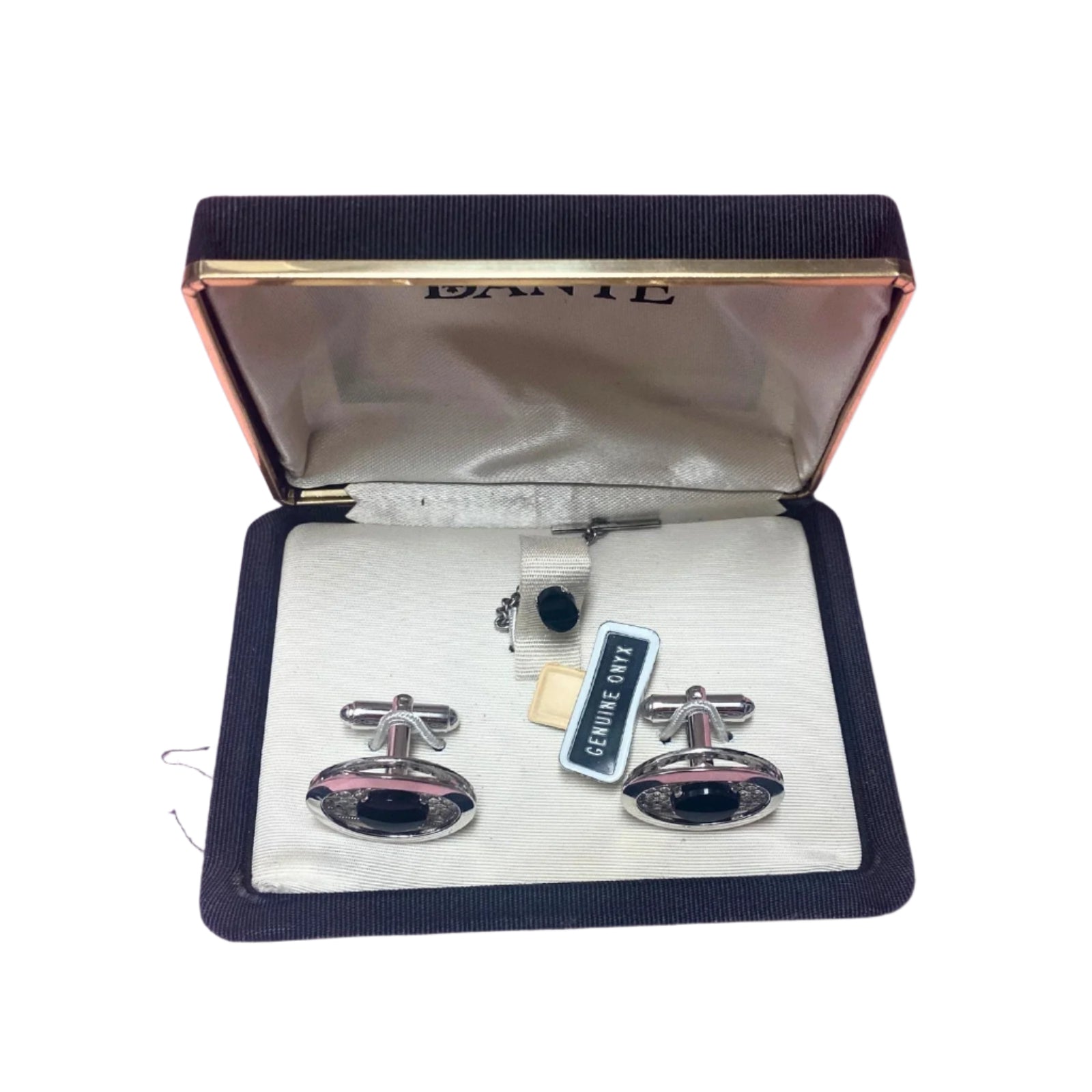 Dante Silver Onyx Cufflinks and Tie Tack Set