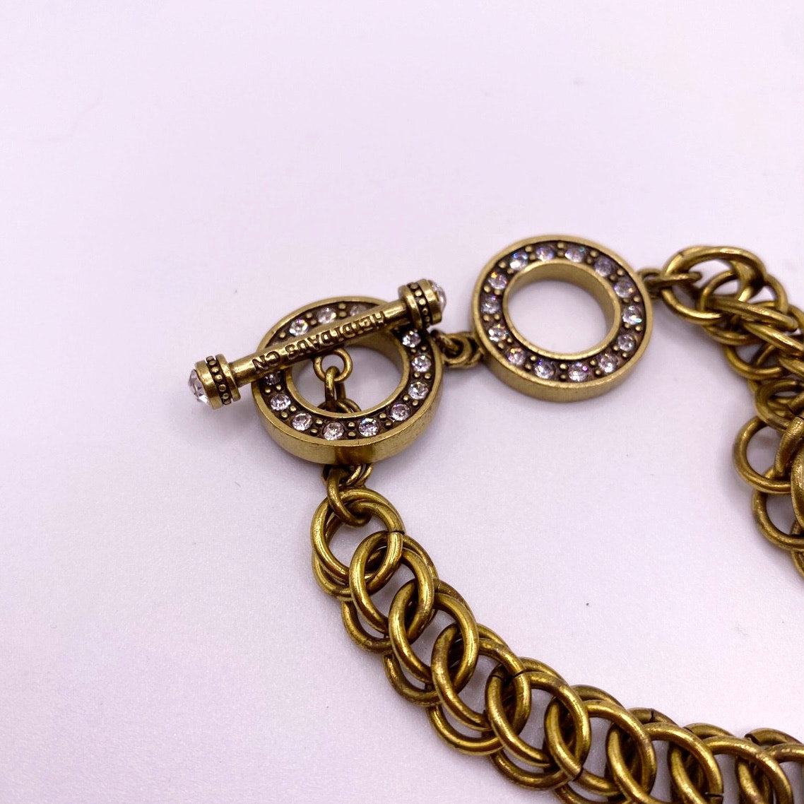 Add a touch of vintage glamour with this stunning Heidi Daus pearl charm bracelet from the 1990s. Featuring elegant faux pearls, whimsical charms, and a secure toggle closure, this bracelet reflects the signature opulence of Heidi Daus designs. Crafted with exceptional attention to detail, it is in excellent vintage condition and makes a standout addition to any jewelry collection.