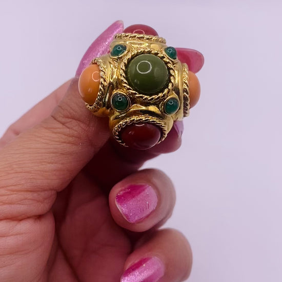 Vintage Joan Rivers Signed Maltese Cross Byzantine Etruscan Clip On Button Earrings