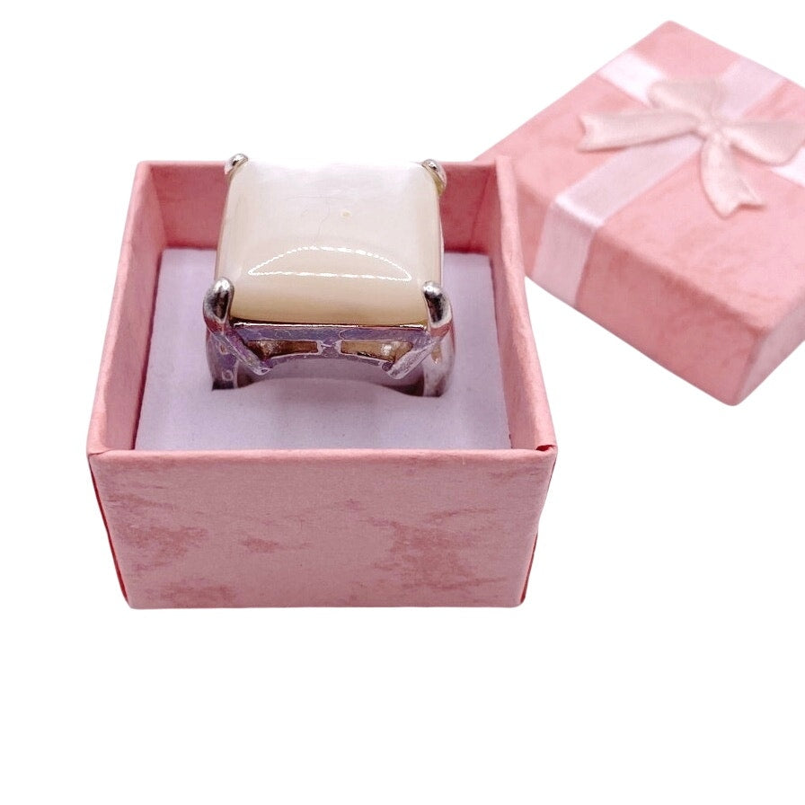 Mother of Pearl Beautiful Statement Ring Silver Plated size 7