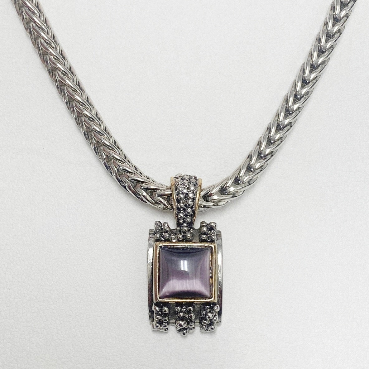 Retro 90s Vintage Necklace and Earrings Set silver Tone and Purple Tiger Eye Stone with Magnetic Clasp