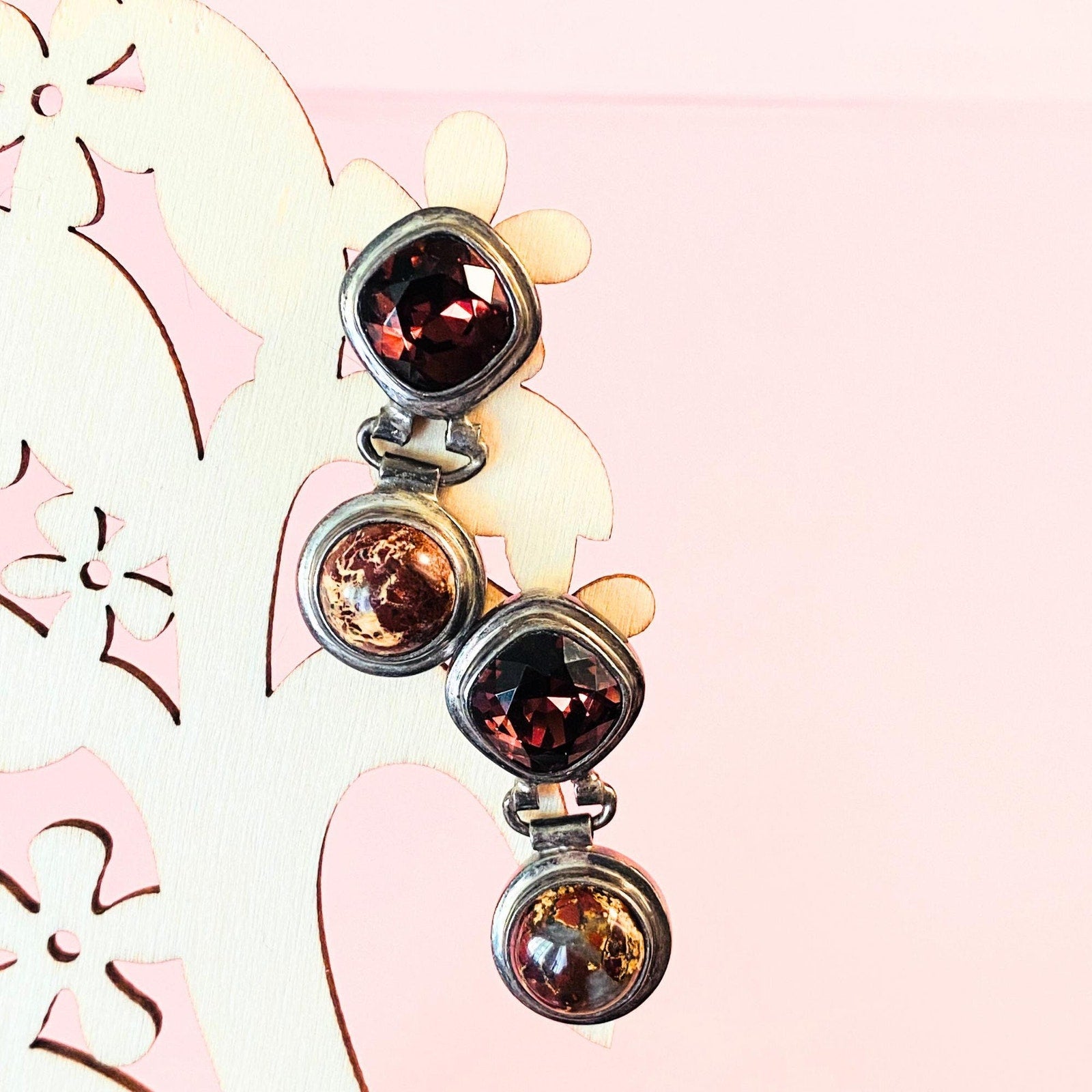 Silver Austrian Crystals and Agate Stones Earrings