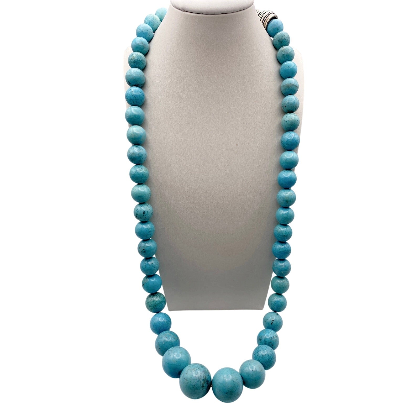 Sleeping Beauty Turquoise XL Vintage Necklace Sterling Silver Closure 26”