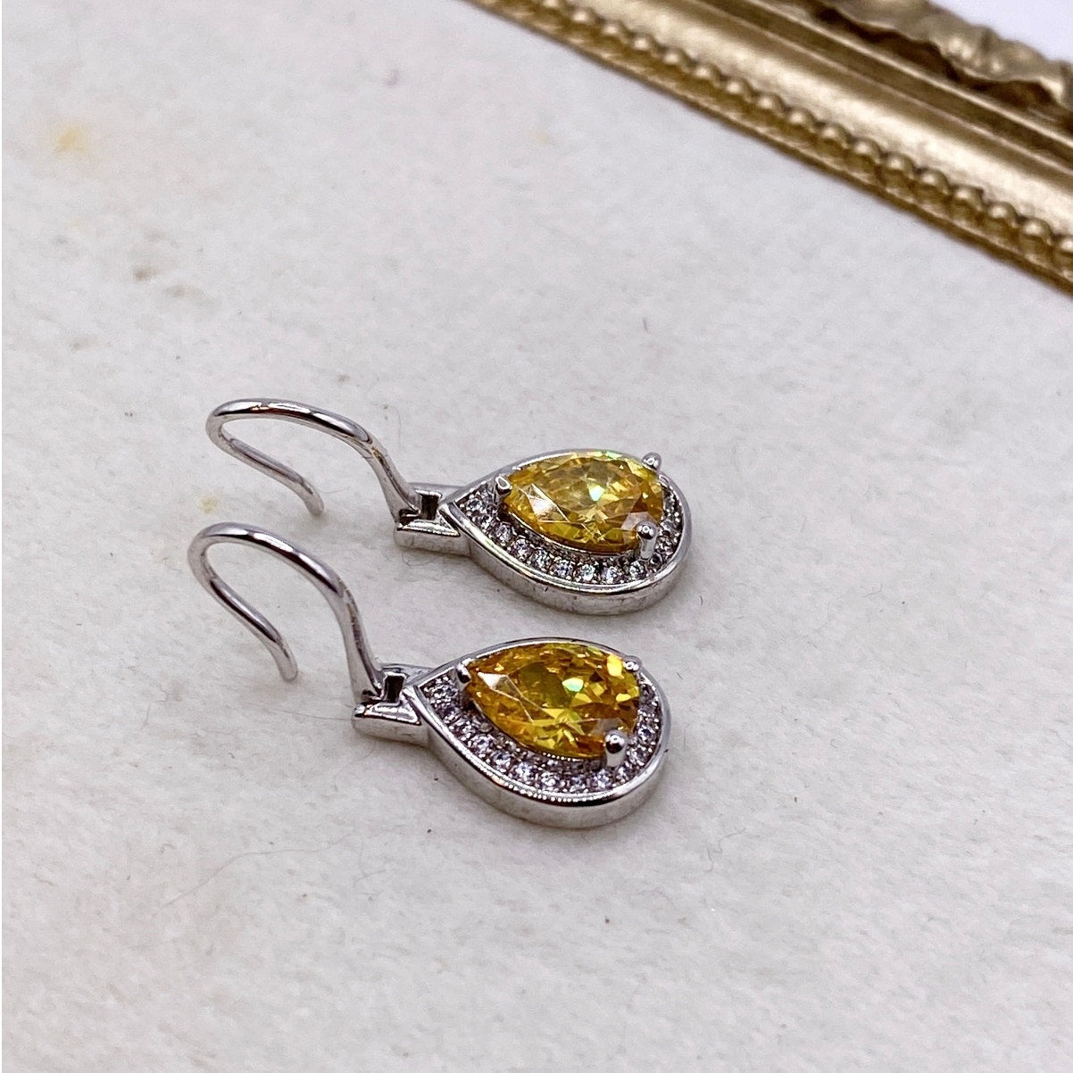 These elegant sterling silver earrings feature dangling teardrop-shaped cubic zirconia stones in a warm citrine hue. Measuring approximately 1 cm, the delicate drop design adds subtle movement and sparkle, making them perfect for both everyday wear and special occasions. Crafted in the mid-2000s, these earrings offer a refined, like-new appearance with classic gemstone-inspired brilliance.