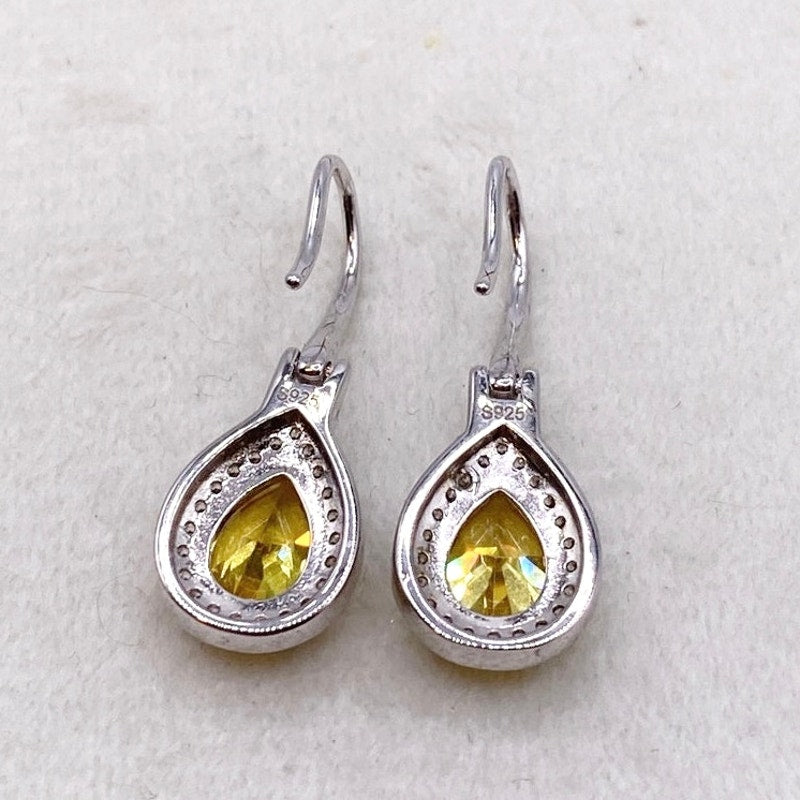 Sterling Silver Earrings with Dangling Citrine Cubic Zirconia Tear Drop 1cm