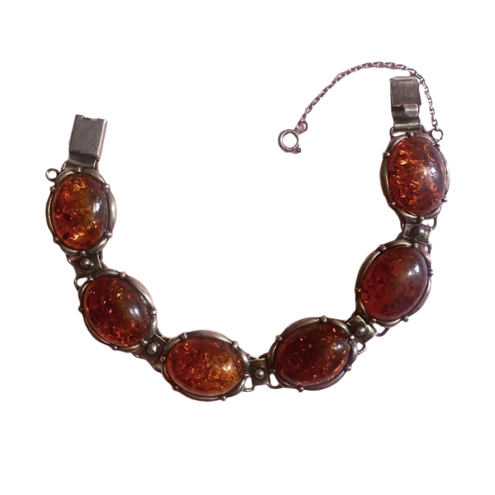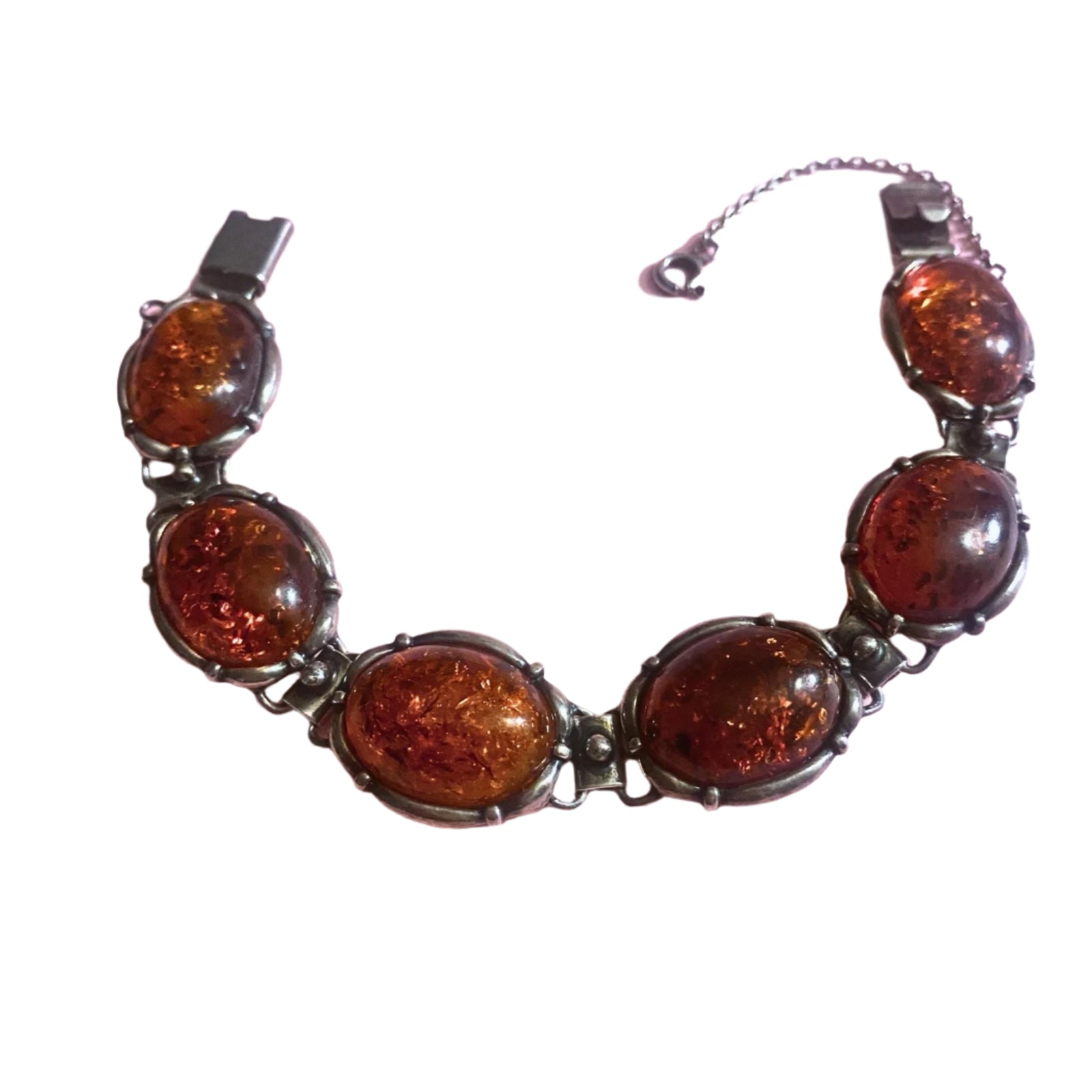 *This Beautiful Amber Charms and Sterling Silver Bracelet with Safety Chain