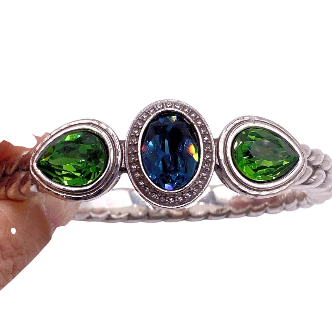 Vintage Brighton Cuff Bracelet 7” with Green and Blue Swarovski Stones