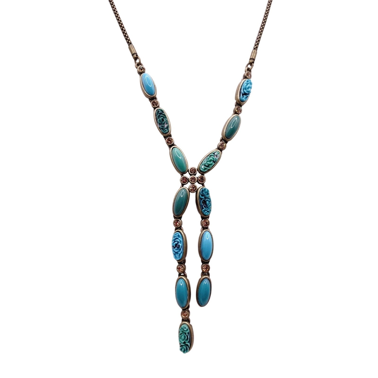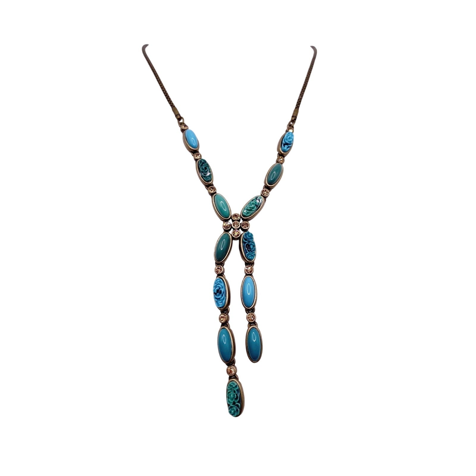 Vintage Liz Claiborne Turquoise Blue Tone Y Necklace