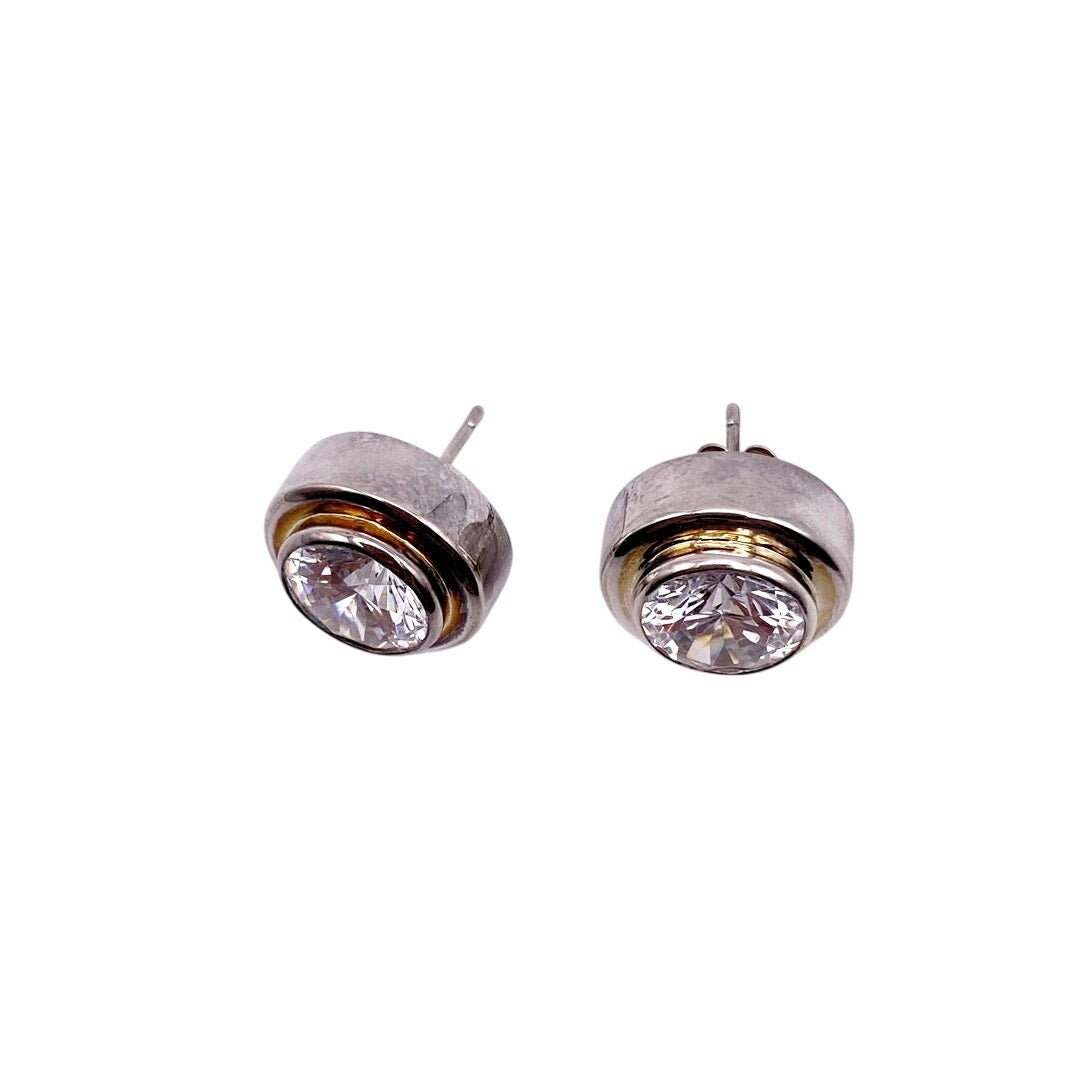 Vintage Sterling Silver Chunky Studs Big CZ Stone
