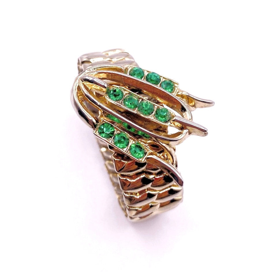 Vintage Stretchy Bracelet Gold Tone and Green Rhinestones Made in Japan Occupied
