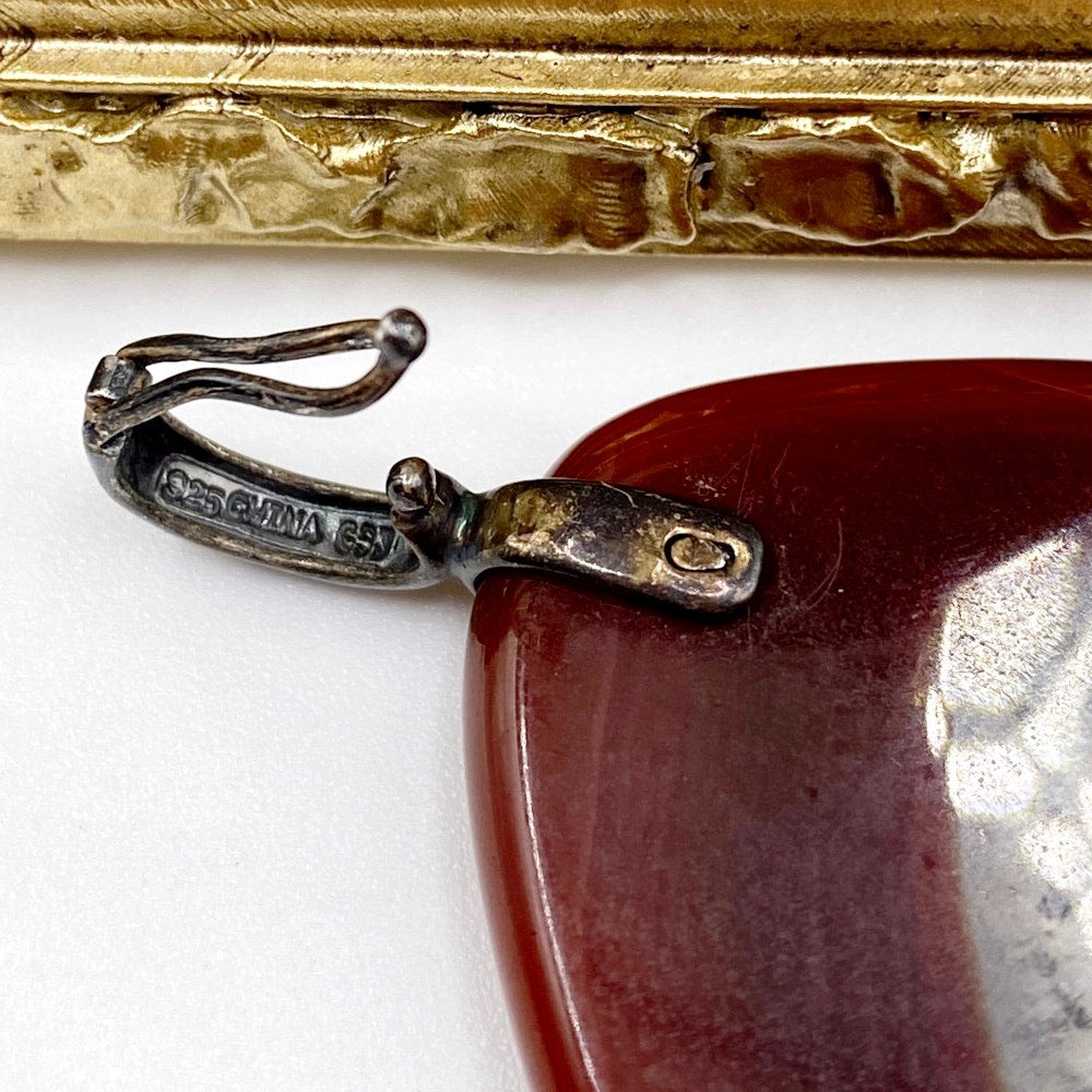Vntg GSJ Red Agate Stones and Carnelian Clip Pendant Necklace and Earrings Set