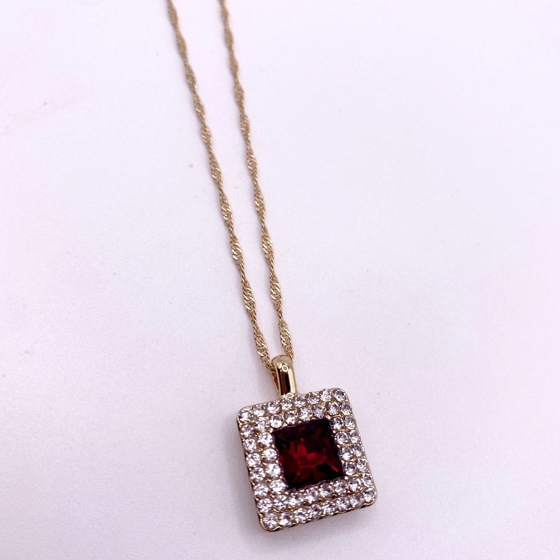 This elegant Monet vintage twisted chain necklace features sparkling red and white rhinestones set along a beautifully crafted gold tone chain. Measuring approximately 18 inches with an adjustable extension, this necklace offers versatile styling and a comfortable fit. Created in the 1990s, it showcases Monet’s signature quality and timeless designer appeal, making it perfect for both classic and statement looks.
